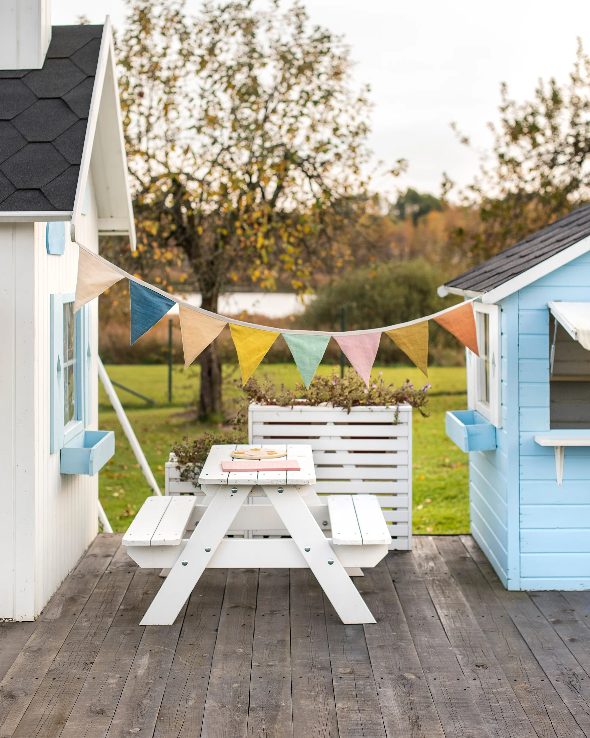 Linen bunting is a perfect decor detail for any gender-neutral nursery. This linen bunting banner has eight colorful double-sided triangles and will brighten any room. The triangles measure at 7x9"/18x22 cm each. The overall garland is 76"/194 cm long and has approximately 10"/25 cm of free tape on each end for easy hanging. This product is made as a part of our zero-waste program, where we use excess linen textile from our production, allowing us to minimize fabric waste and environmental impact.