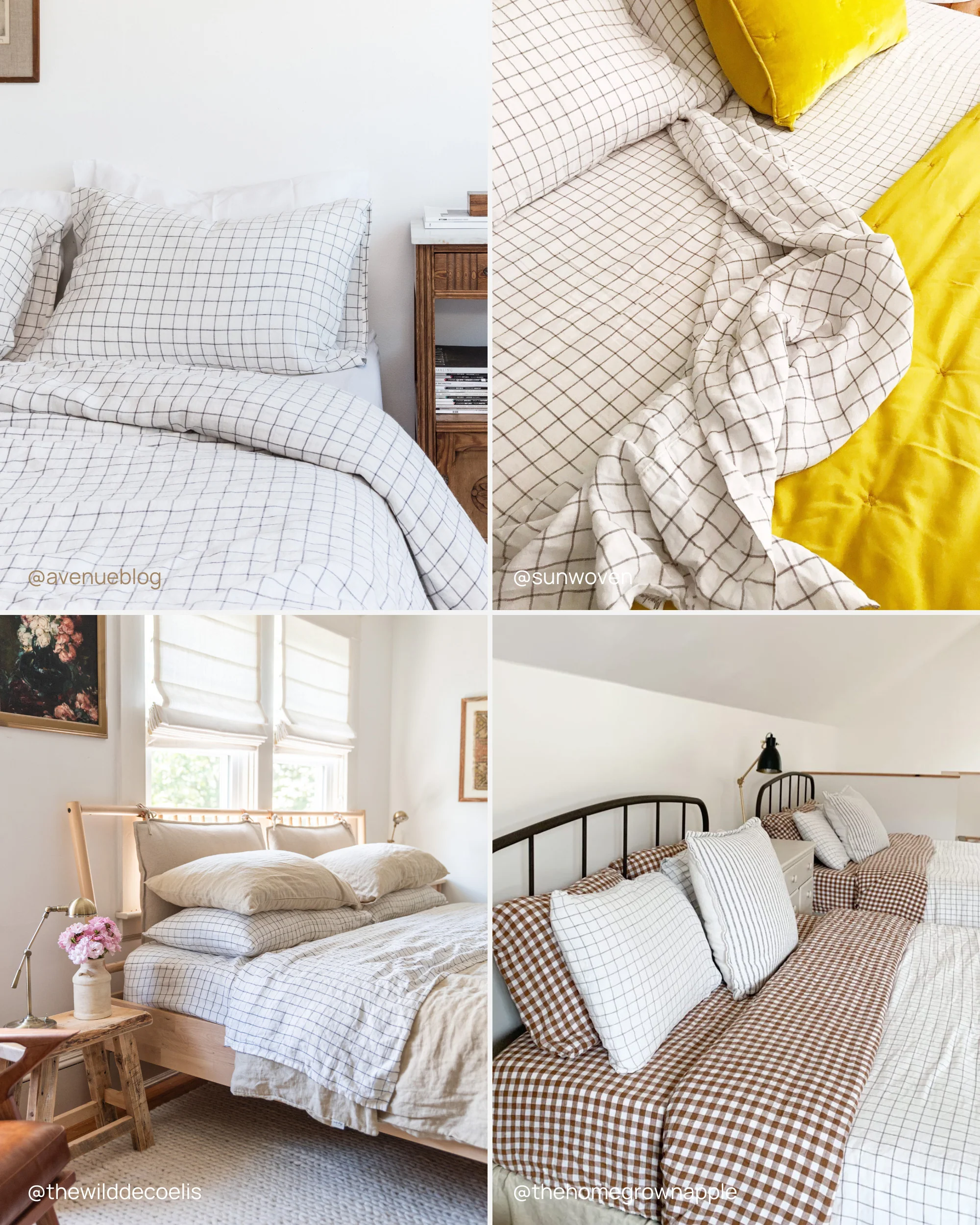 Linen duvet cover set in charcoal grid (windowpane) pattern. Refresh the look of your bed with this linen bedding set featuring a duvet cover and two regular style pillowcases. Our linen duvets are made from wide fabric and do not feature any additional seams in the middle. You can also choose standard, queen or king pillowcases for your bedding set.