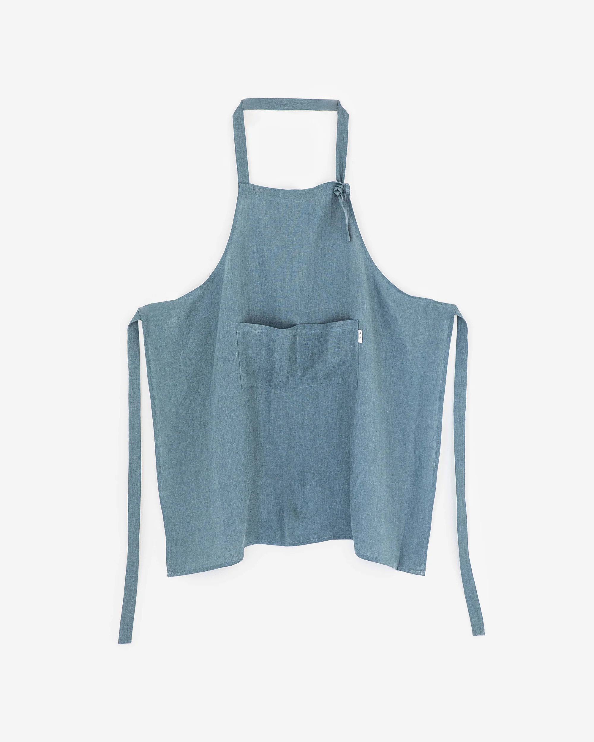 Men's linen bib apron available in various colors. Featuring comfortable straps in the back and an adjustable grommet in the front, this full linen apron for men is an irreplaceable companion in the kitchen and garden. Fitted with a roomy front pocket, it combines style and function.
