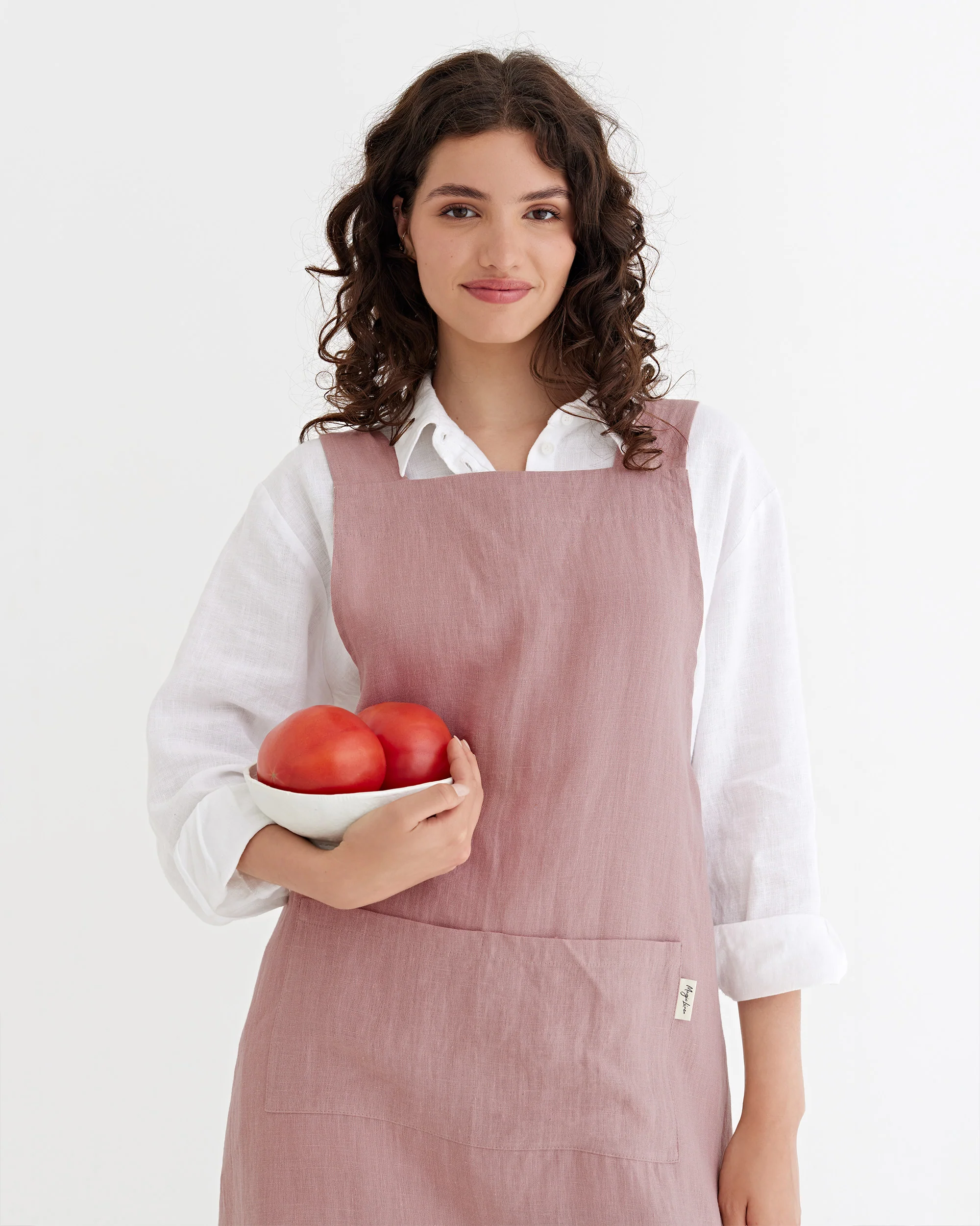 Pinafore cross-back linen apron in Woodrose